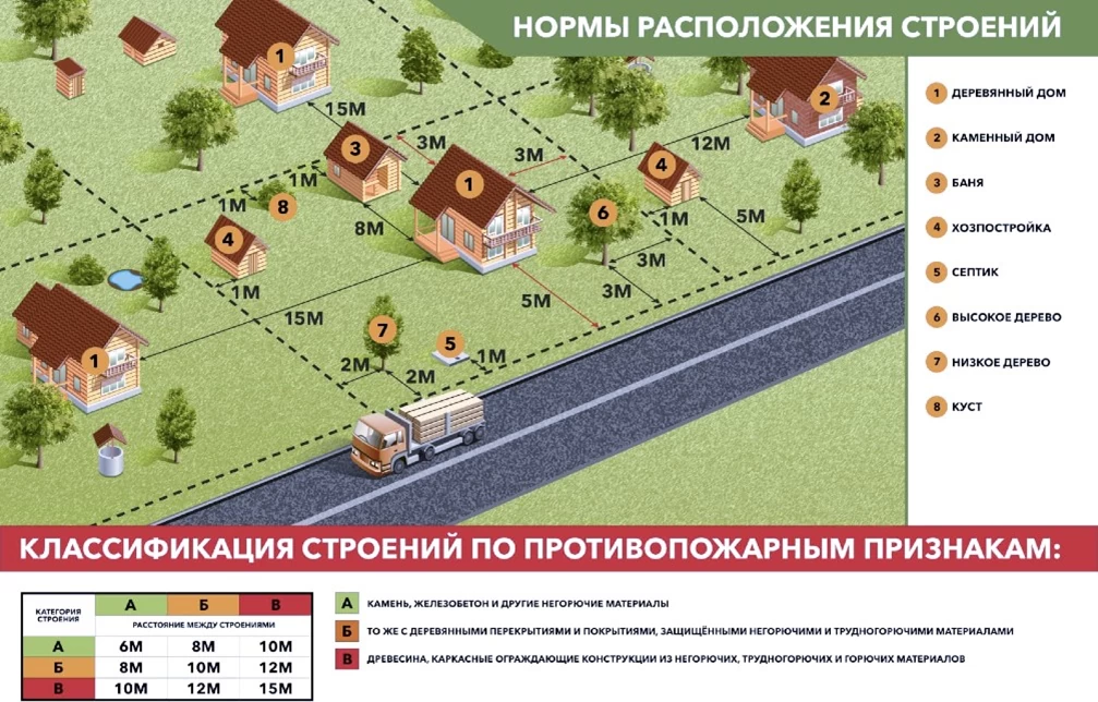 - между домом и смежным забором должна оставаться дистанция в 3 метра;