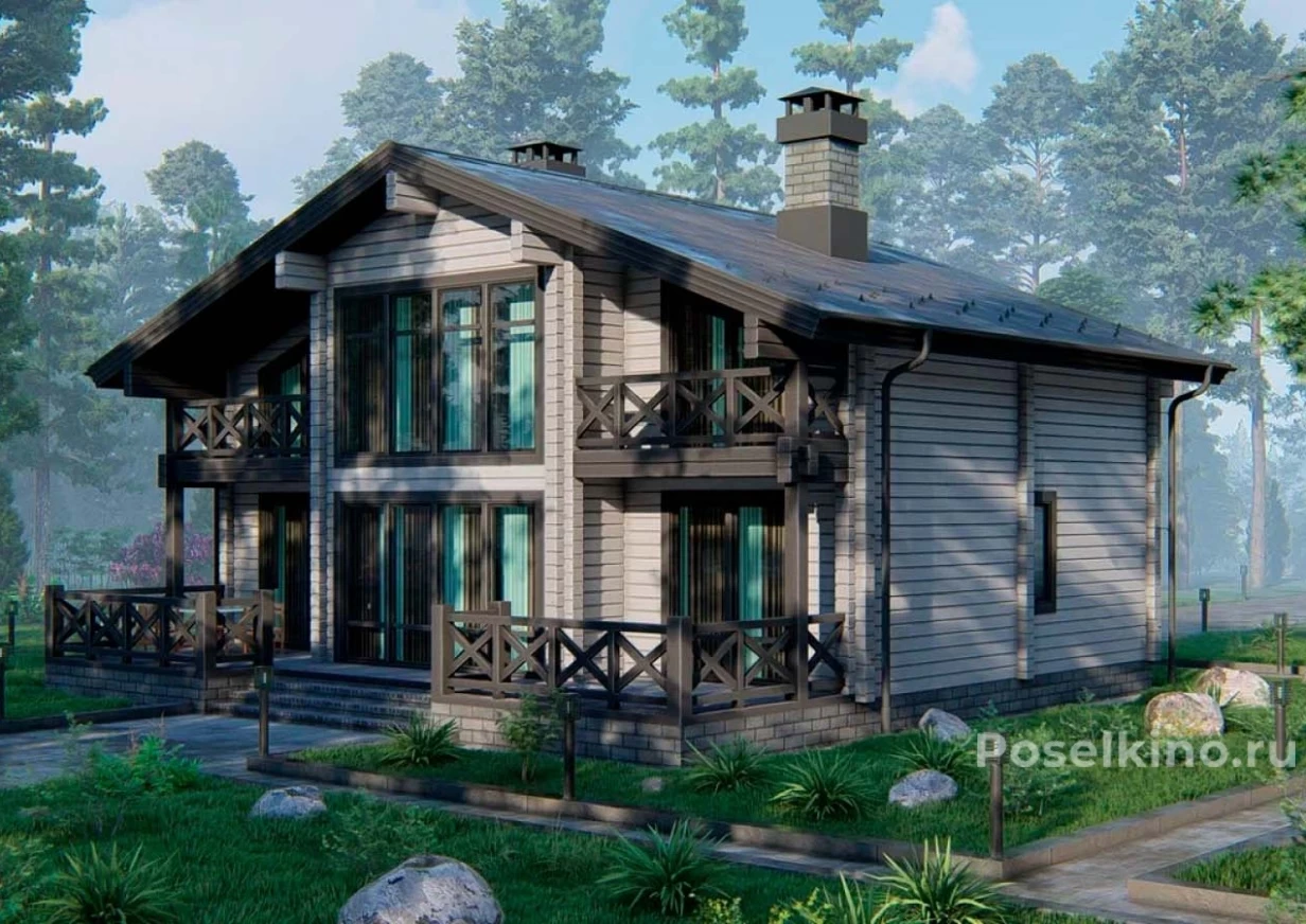 Проект двухэтажного дома из клееного бруса 232 кв. м "Флагман"