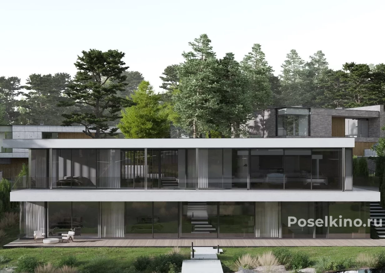 Воздушный минималистичный экстерьер резиденции обращен к ручью, а с другой стороны уравновешивается террасой-патио. У дома интровертный характер. «Все нужное – внутри», – такова концепция резиденции, наполненной светом и кислородом и полностью лишенной любой формы гротеска и орнамента.