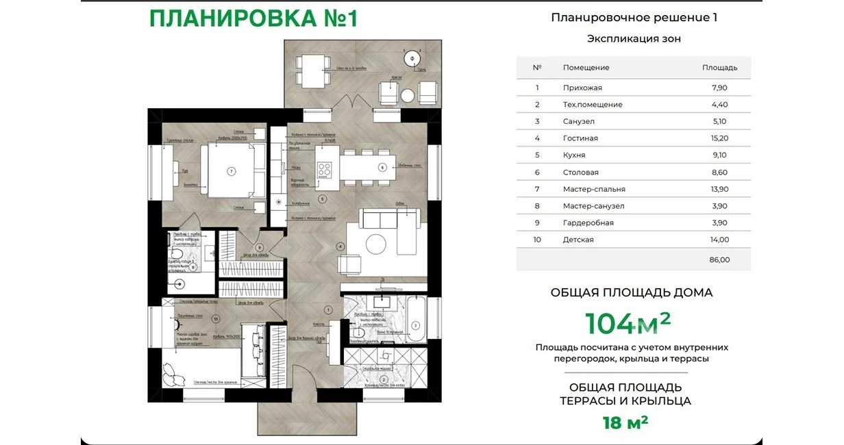 - Общая площадь: 104 кв. м