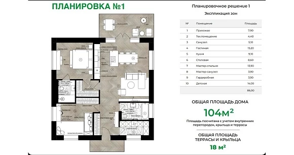 Проект одноэтажного дома из газоблоков площадью 104 кв.м