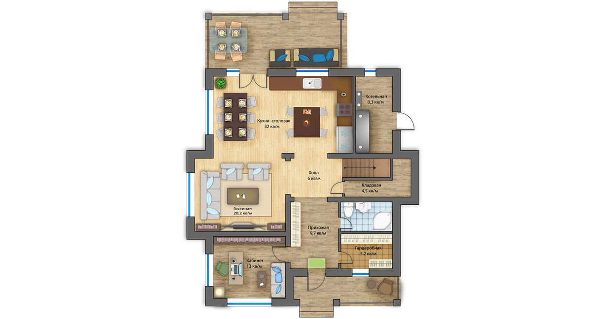 Проект двухэтажного дома из газобетона 210 кв.м. Эдинбург