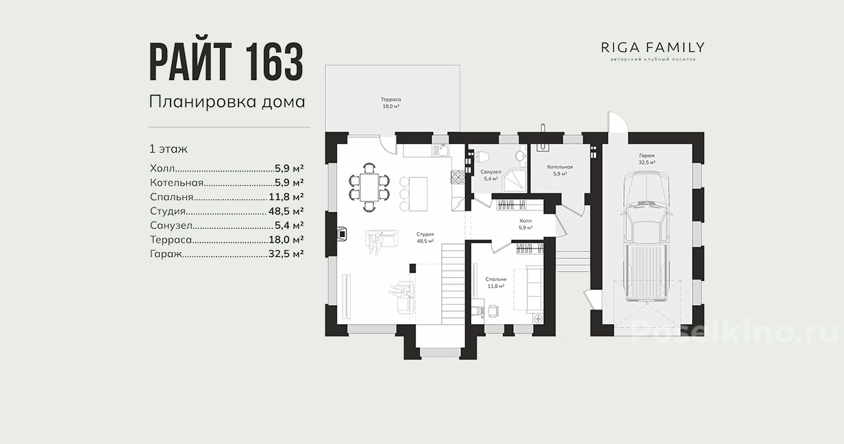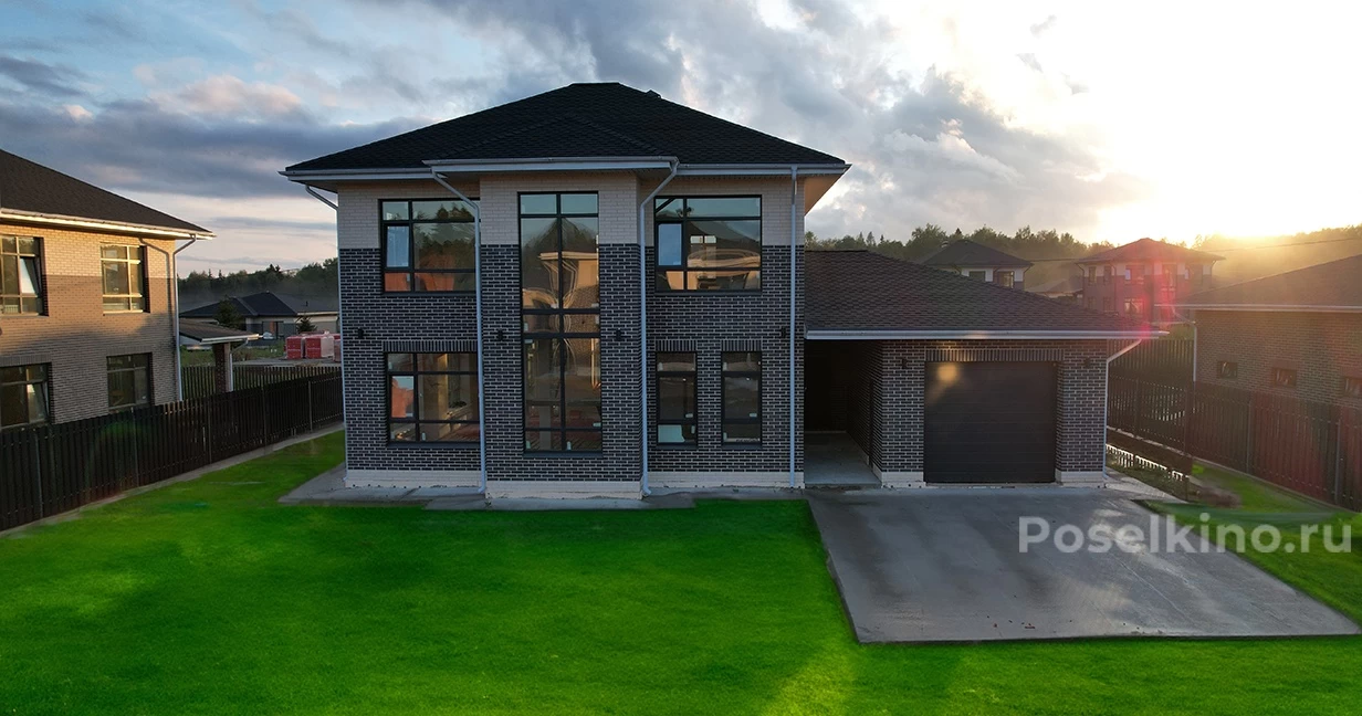 Двухэтажный дом из теплой керамики в поселке комфорт-класса Riga Family. В доме 5 комнат, 3 санузла, в проект входит гараж. Особенность проекта - панорамные окна, наполняющие светом все помещения.