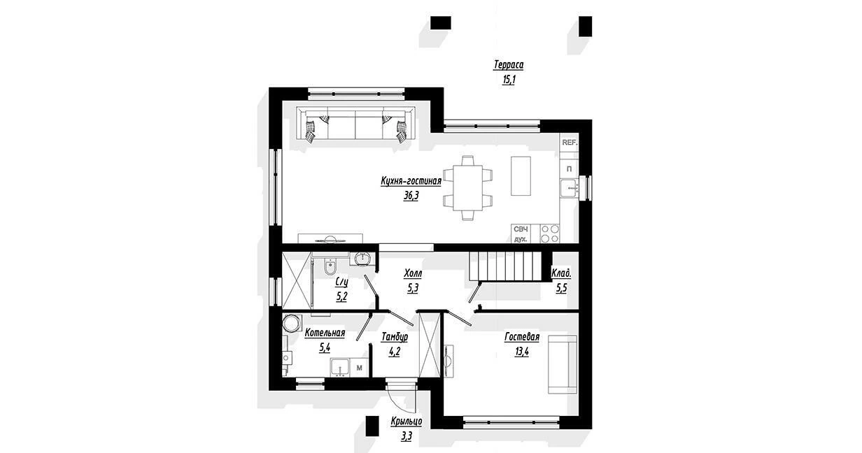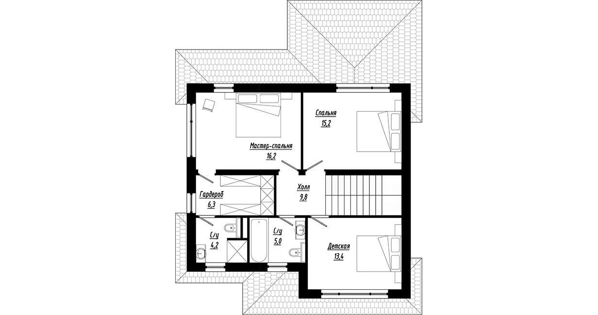 Двухэтажный дом в комплектации "Теплый контур". Площадь 160 кв.м, 4 спальни, 3 санузла.