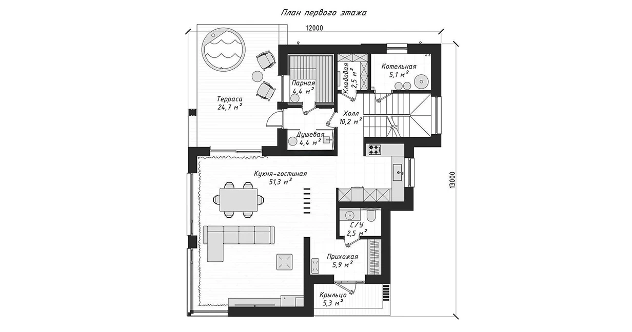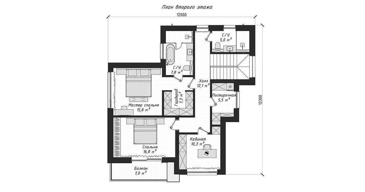 Проект двухэтажного каменного дома 170 кв.м. на участке 6.5 соток