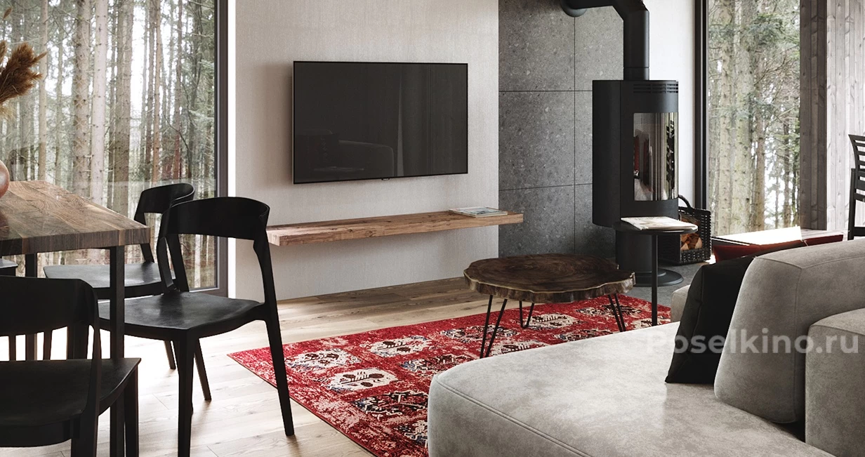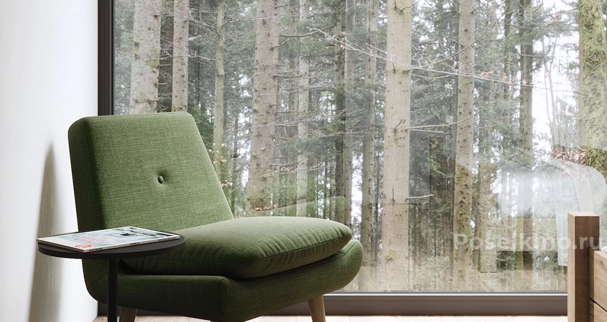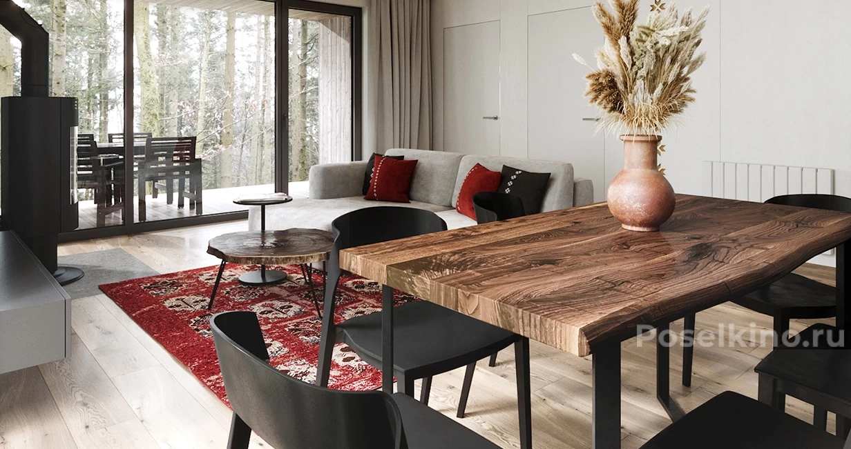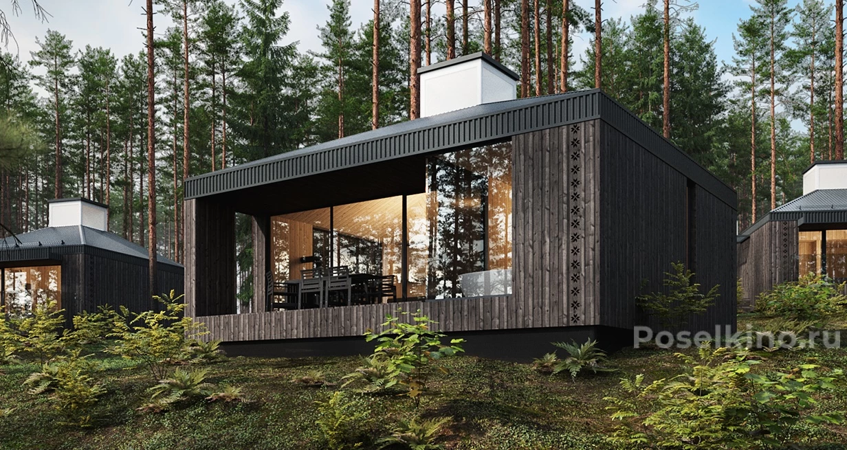 Уютный дом с панорамными окнами и просторной террасой.