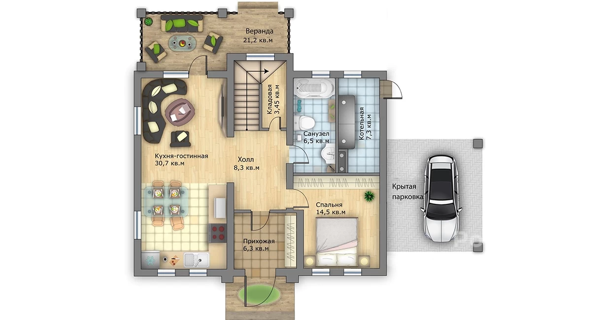 Проект двухэтажного дома площадью 150 кв.м в коттеджном поселке Заповедный лес.
