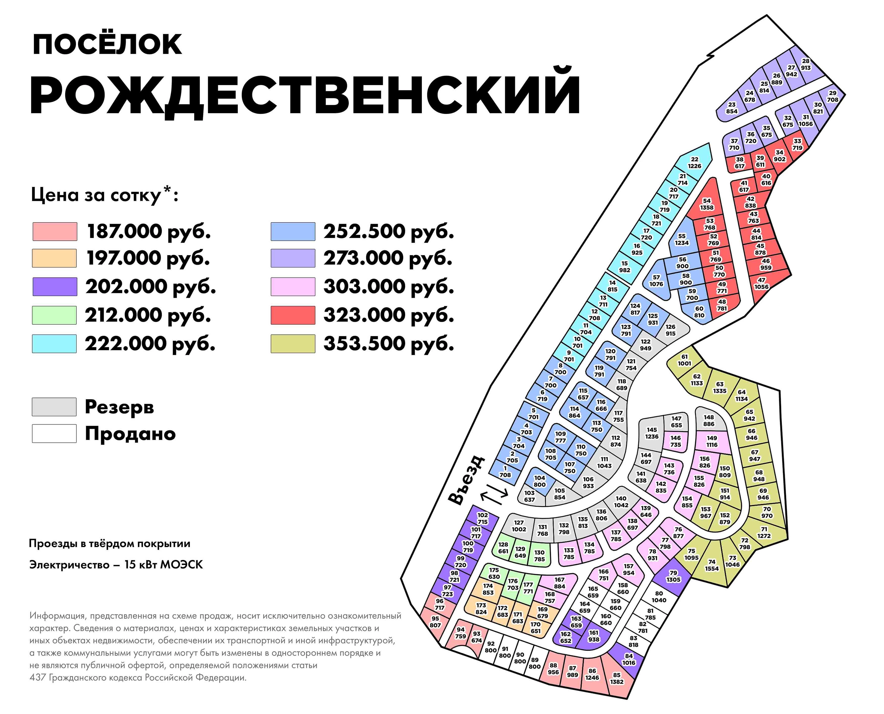 Продажа участка № 175 в коттеджном поселке Рождественский