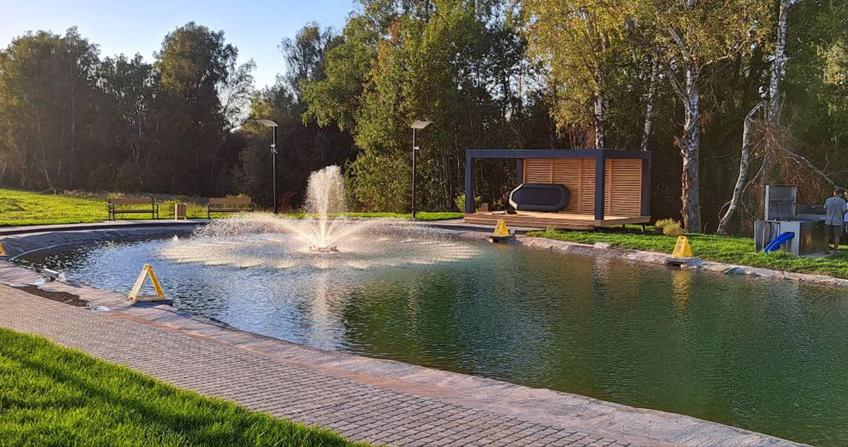 В поселке завершено строительство водоема с пляжем. Фонтан с подсветкой, чистейший белый песок, прогревшаяся на солнце вода, зелень леса вокруг сделают ваш загородный отдых поистине целебным и восстанавливающим.
