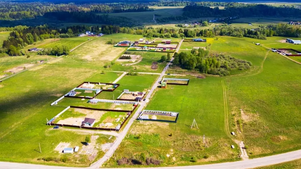 Поселок находится в Московской области в 79 км от столицы. Полтора часа на машине без пробок, также ходят электричка и автобус. В наличии электричество, дороги, связь. Возможность покупать продукты с фермы. Минимаркет и строительный магазин в 8 минутах езды.