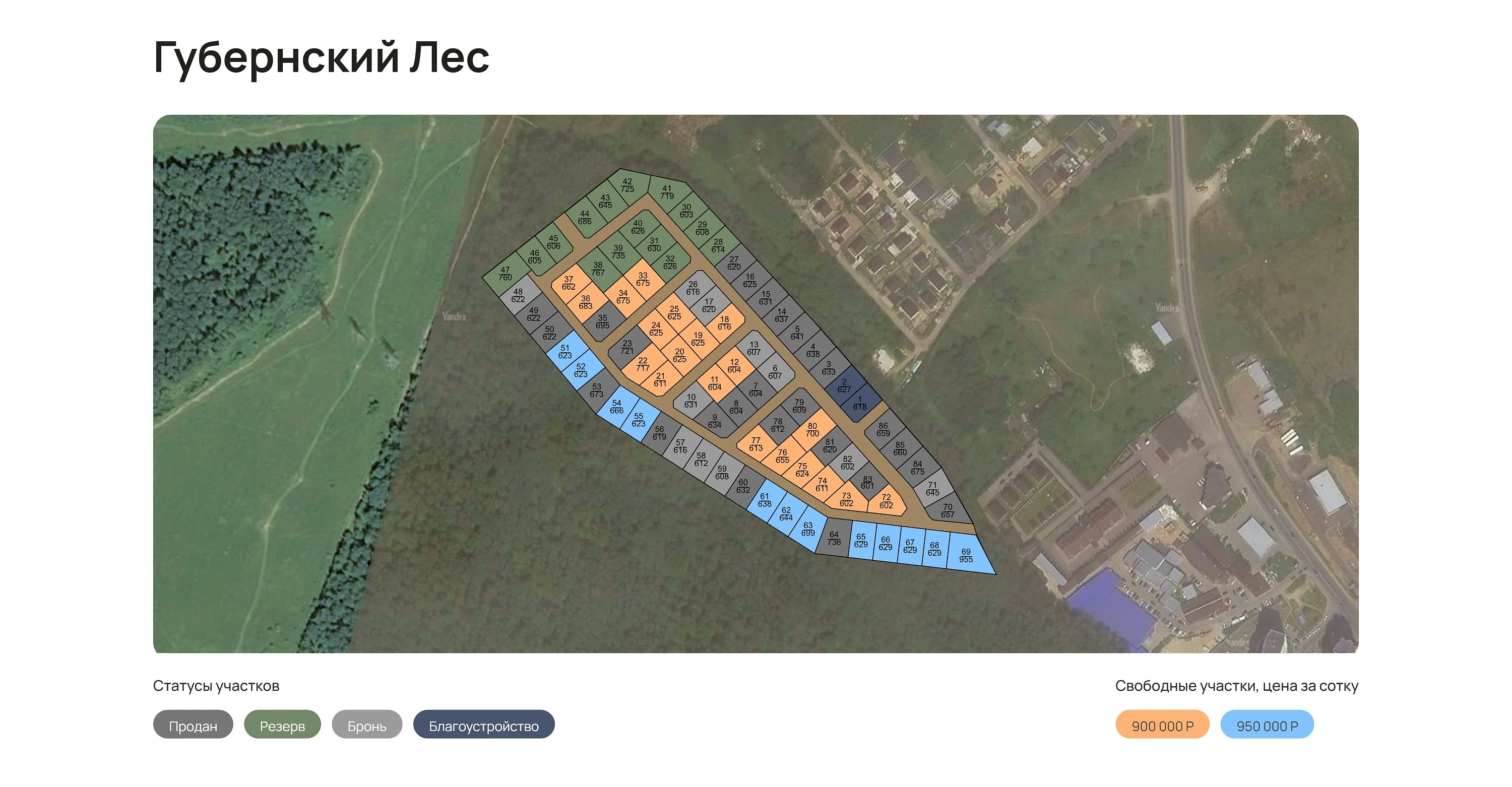 Теперь уже официально поселок Губернский лес разделен на 87 участков, предназначенных для ведения садоводства. Кадастровый номер для ориентира 50:31:0020501:9448. После межевания право собственности покупателей фиксируется в ЕГРН, можно оформить ипотеку на покупку участка и последующее строительство дома.