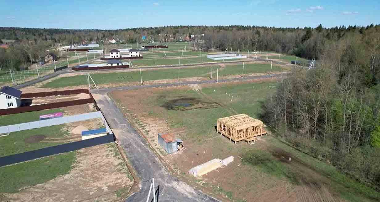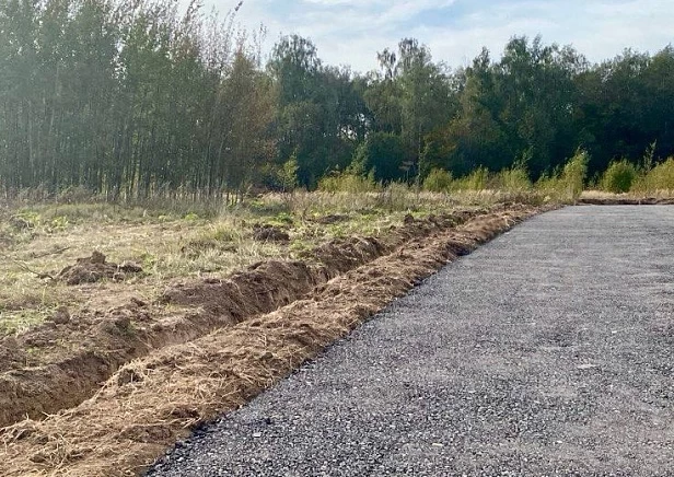 В стоимость входят дороги из асфальтовой крошки с дренажными канавами. Пока стоит хорошая погода, активно ведутся строительные работы.