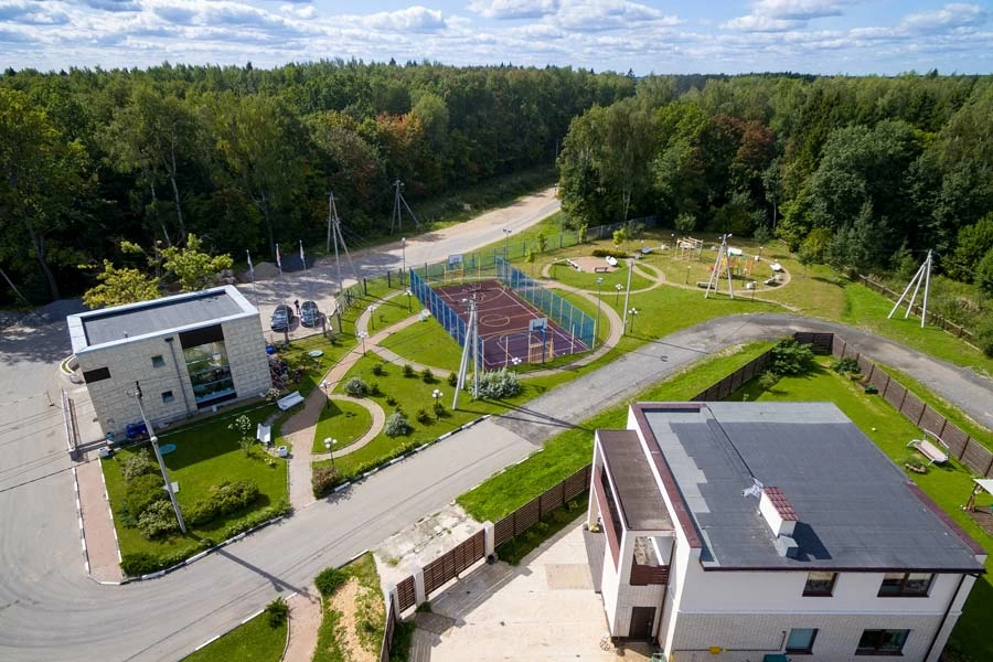 Поселок окружен лесом с богатой фауной и входит в зеленую зону Подмосковья. В самом поселке имеются детская и спортивные площадки, индивидуальное ограждение на каждом участке.