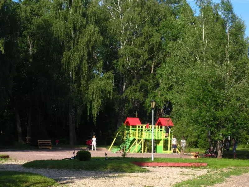 Поселок окружен лесным массивом, к которому примыкает часть участков. Хорошая экологическая обстановка. Единый архитектурный стиль. Имеется зона отдыха с озером, дорожками, беседками и детской площадкой.