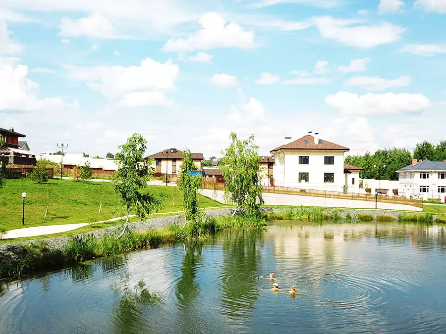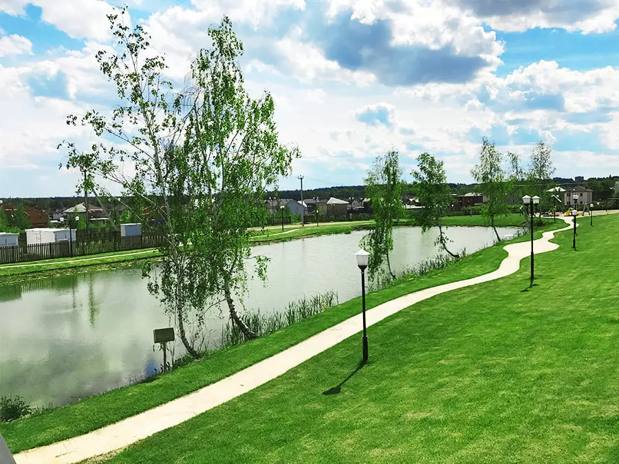 – Детские площадки, озеро для рыбалки и купания, футбольное поле, спортивная площадка
