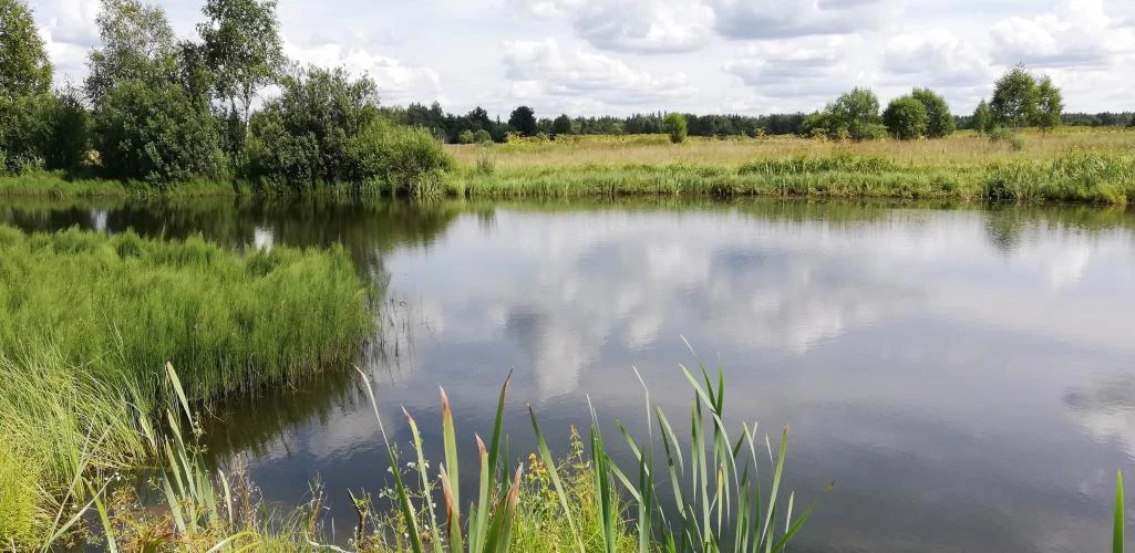 Место находится в тупичке у леса, никто не будет ездить мимо, создавая шум и пыль. Асфальтированные дороги будут до участка, так что проблем с проездом не возникнет. Рядом с будущим поселком автобусная остановка и магазин. До города минут 20-30, лесное озеро Тростенское - поближе.