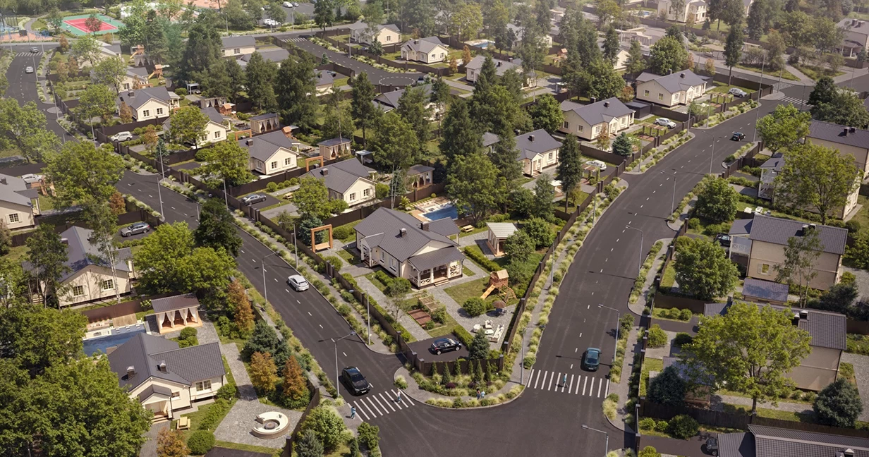 недалеко от города, продуманная концепция, дороги хорошие, продают готовые дома, коммуникации все есть