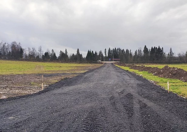 Завершается комплексная подготовка дорожного полотна в поселке: укладка и уплотнение основания проездов, нарезка кюветов для дренажной системы, формирование финишного слоя из асфальтовой крошки.
