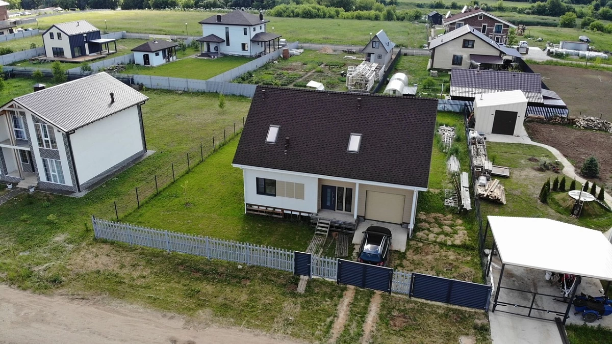 Поселок охраняемый, уличное освещение работает, за детей спокойно. Газ, вода, электричество заведены к границе. Выход к Москве-реке оказался не пустым маркетингом, гуляю вдоль берега каждый вечер. Звенигород с поликлиникой и супермаркетом в десяти минутах, так что быт решен.