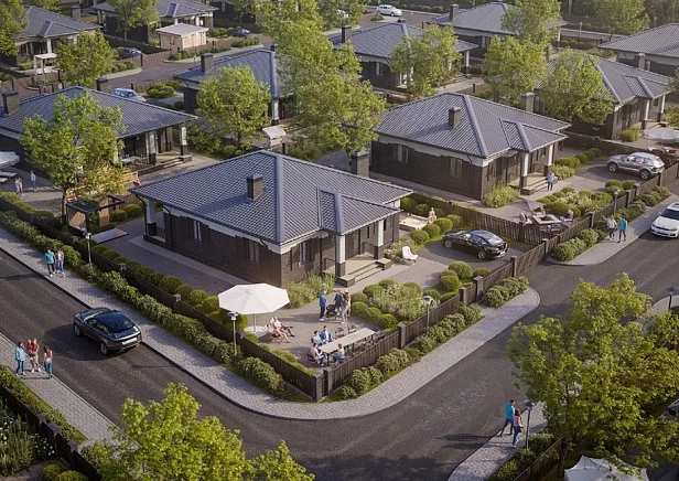 В поселке предусмотрены широкие асфальтированные дороги, закрытая территория, видеонаблюдение, гостевая парковка на въезде. Особое внимание уделено общественным пространствам: детский городок, тренажерная зона, зона отдыха с беседками и кинотеатром под открытым небом. Точкой притяжения жителей станет клубный дом, где разместятся коворкинг, зал для фитнеса, клуб, кафе.