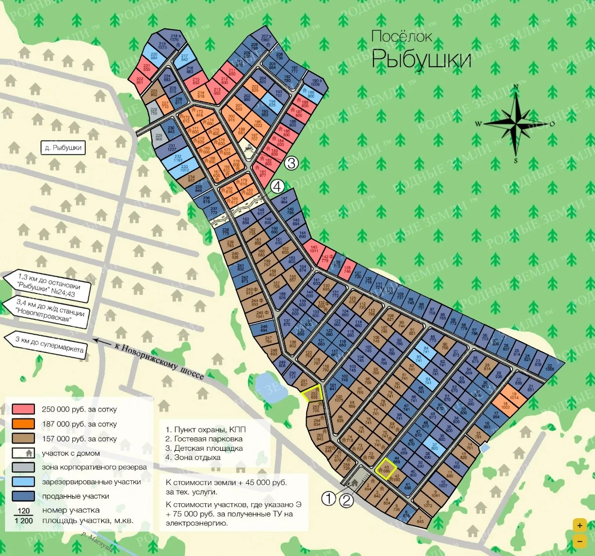Для поселка предусмотрен пакет обустройства "Комфорт", который предполагает строительство здания для размещения сотрудников службы охраны и правления. Вместе с фасадным ограждением КПП исплючит въезд на территорию поселка посторонних.