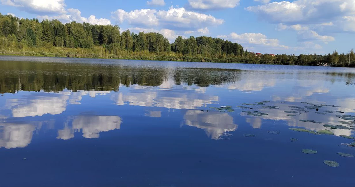 Озеро рядом с поселком, лес, хорошая дорога до въезда и по поселку