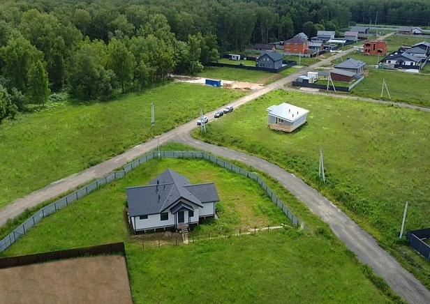 В поселке готовы дороги, будет закрытая территория, предусмотрены электричество, газ, центральное водоснабжение и канализация. Можно приобрести один из уже возведенных домов.