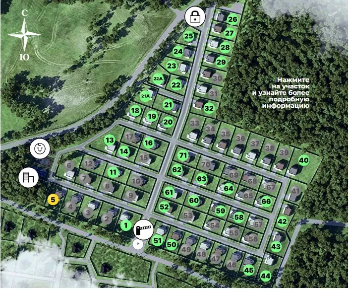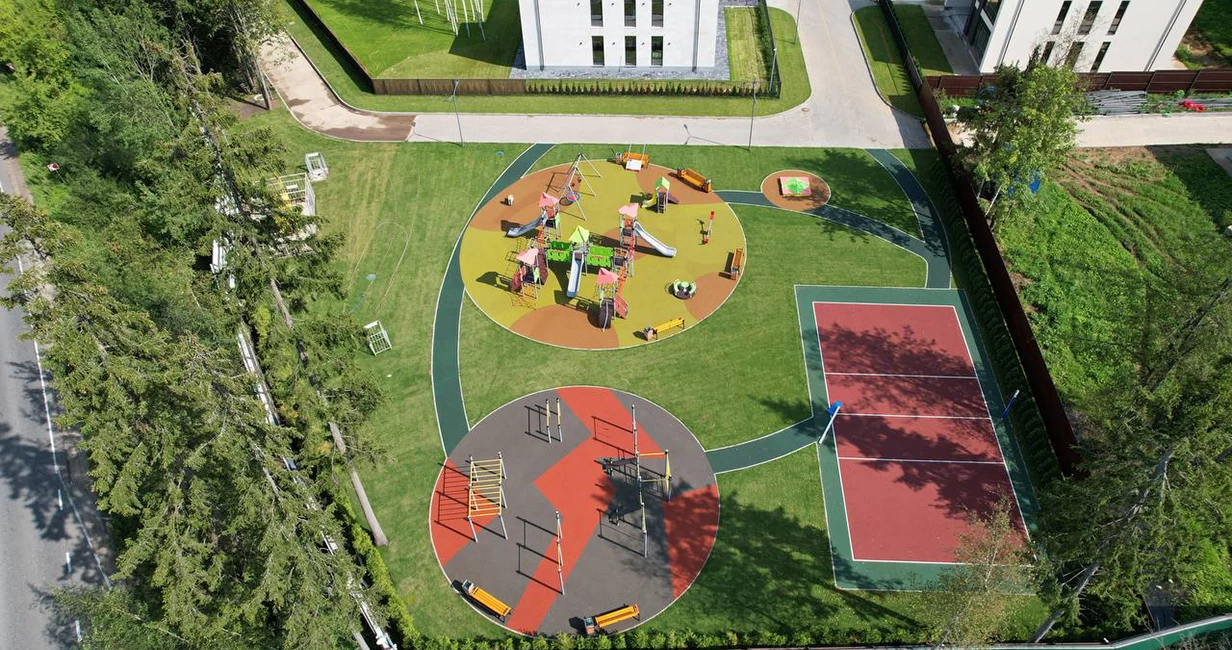 На территории поселка оборудована спортивная площадка, детский городок, work-out. Безопасность обеспечивает КПП и служба охраны, система видеонаблюдения. В радиусе нескольких километров от поселка вся социальная инфраструктура: ТЦ, рестораны, образовательные, медицинские, развлекательные учреждения.