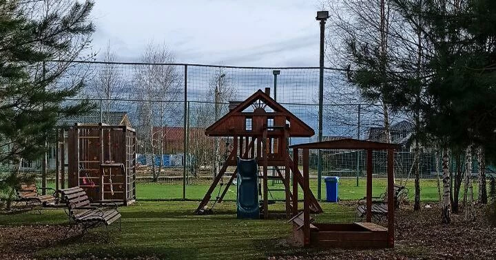 Электричество и газ подведены к границам участков. На территории поселка обустроено несколько площадок для малышей и спортивных зон для спортивных игр на свежем воздухе, есть небольшой парк с прудом.
