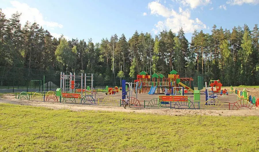 – Детская площадка, площадки для игры в футбол и баскетбол, зона отдыха, пруд